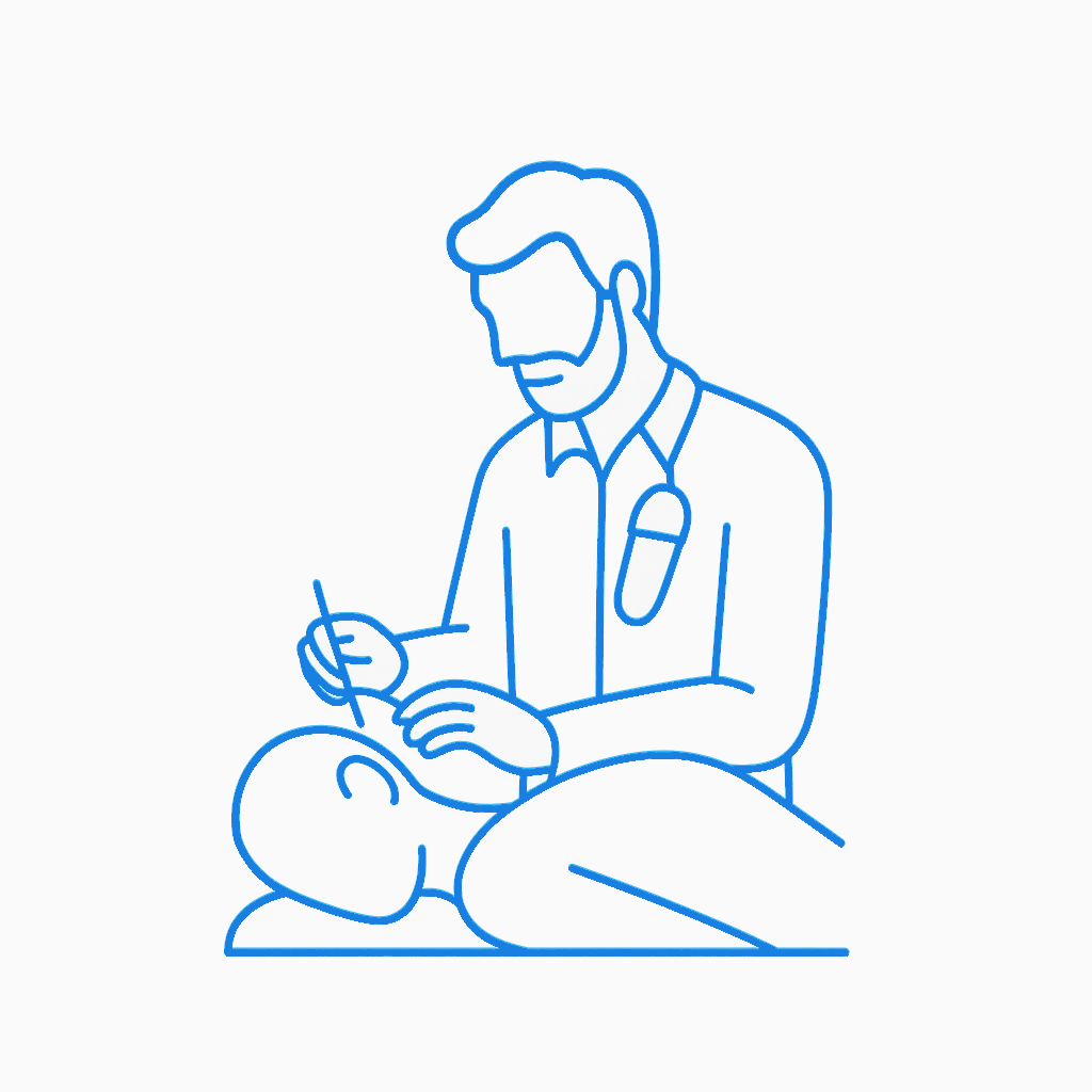 Kennismaking, analyse van je klachten en medische voorgeschiedenis.